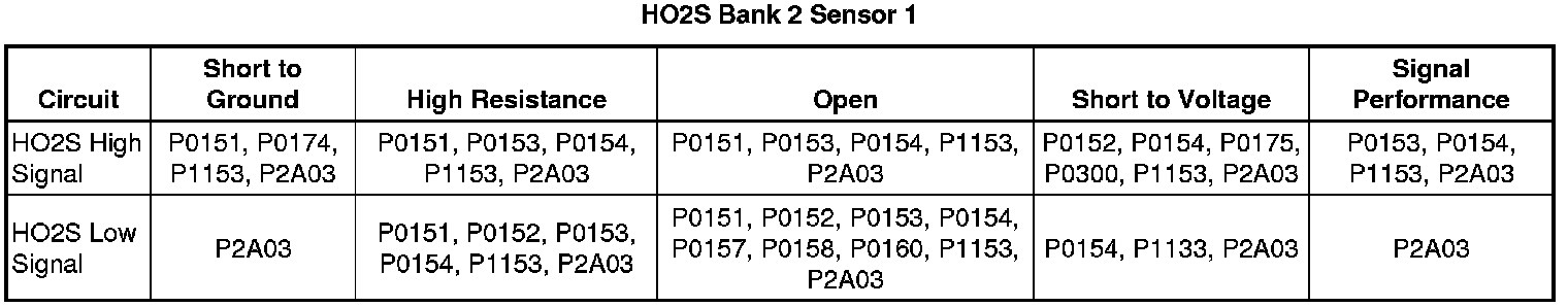 * The ECM detects that the HO2S 1 signal voltage is less than 50 mV for more than 25 seconds.
