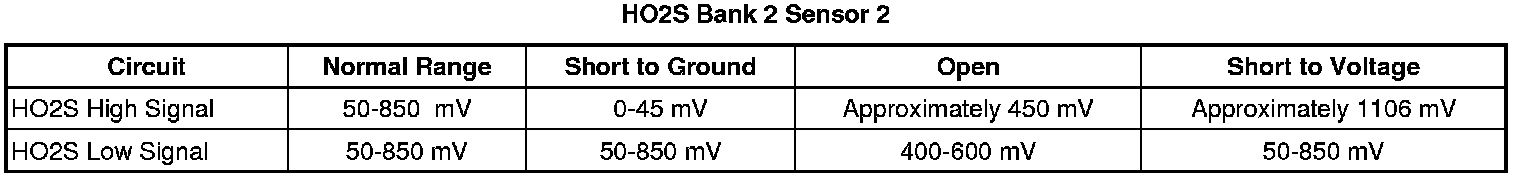 * The ECM detects that the HO2S 2 signal voltage remains below 50 mV for more than 120 seconds.