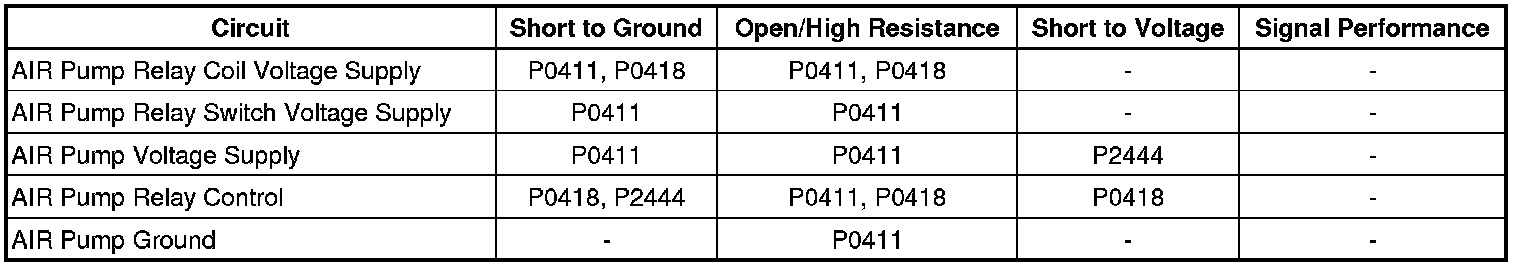 * DTC P0411 runs once per ignition cycle when the above conditions are met for greater than 5 seconds.