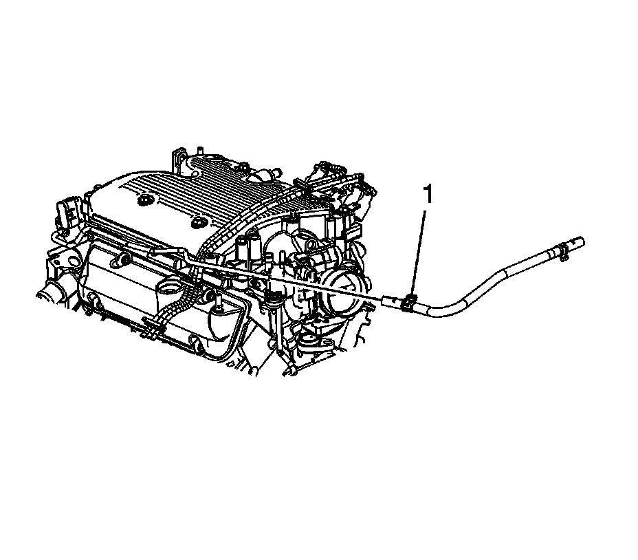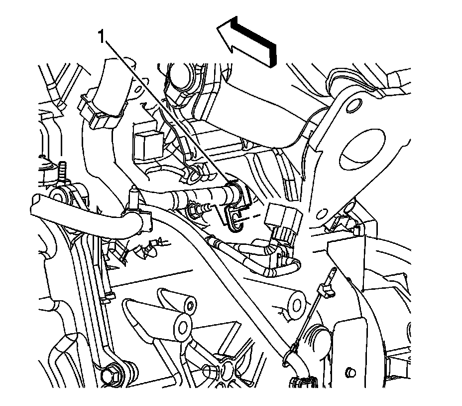 33. Disconnect the engine wiring harness electrical connector (1) from the evaporative emission (EVAP) canister purge solenoid.