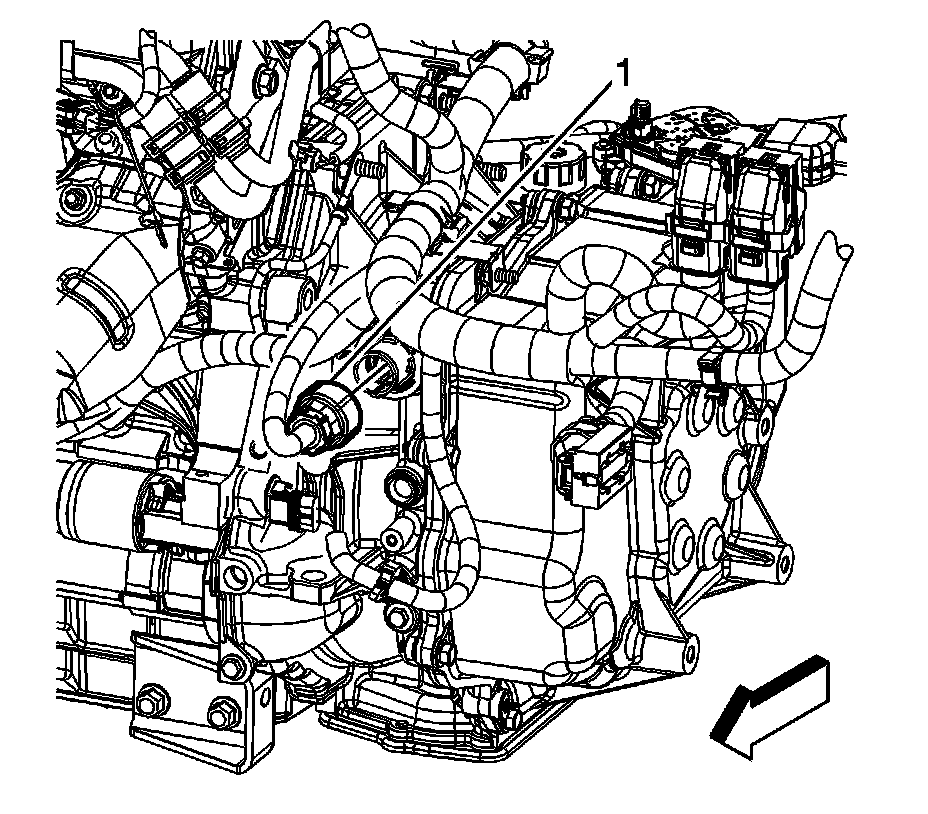 60. Disconnect the engine wiring harness electrical connector (1) from the transaxle.