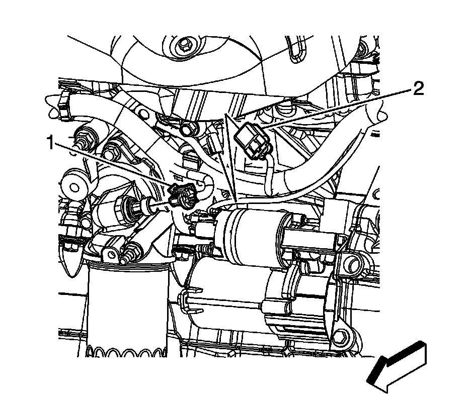 2. Disconnect the engine wiring harness electrical connector (2) from the knock sensor.