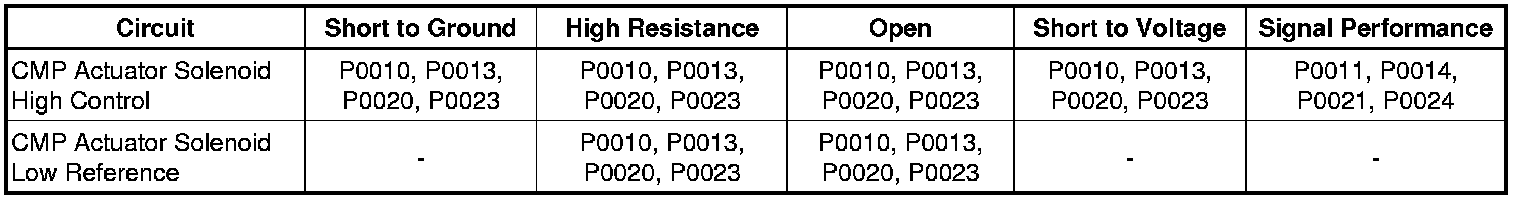 - Exhaust Camshaft Position (CMP) Actuator Solenoid Control Circuit Bank 1