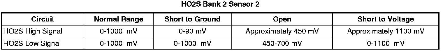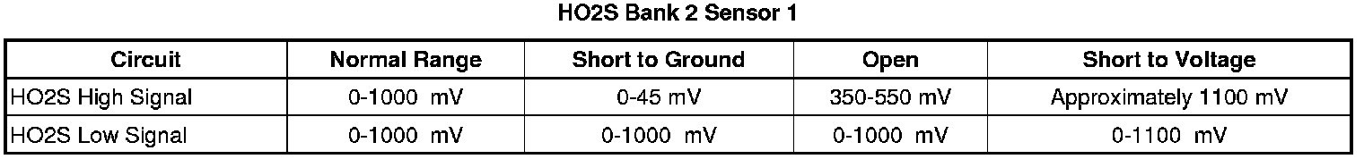 * The ECM detects that the HO2S 1 signal voltage is less than 50 mV for more than 25 seconds.