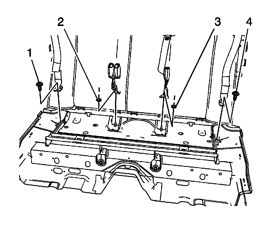 1. Remove the rear seat cushion. Refer to Rear Seat Cushion Replacement (Rear Seat Cushion Replacement).