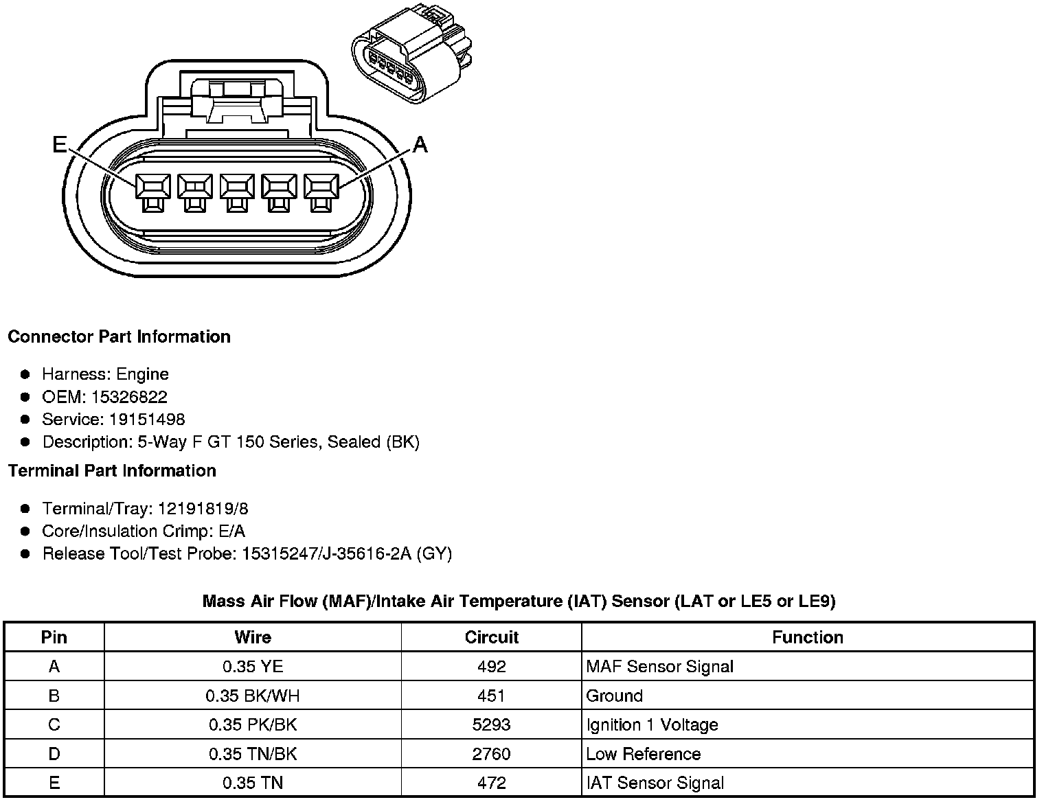 Mass Air Flow (MAF)/Intake Air Temperature (IAT) Sensor (LAT or LE5 or LE9)