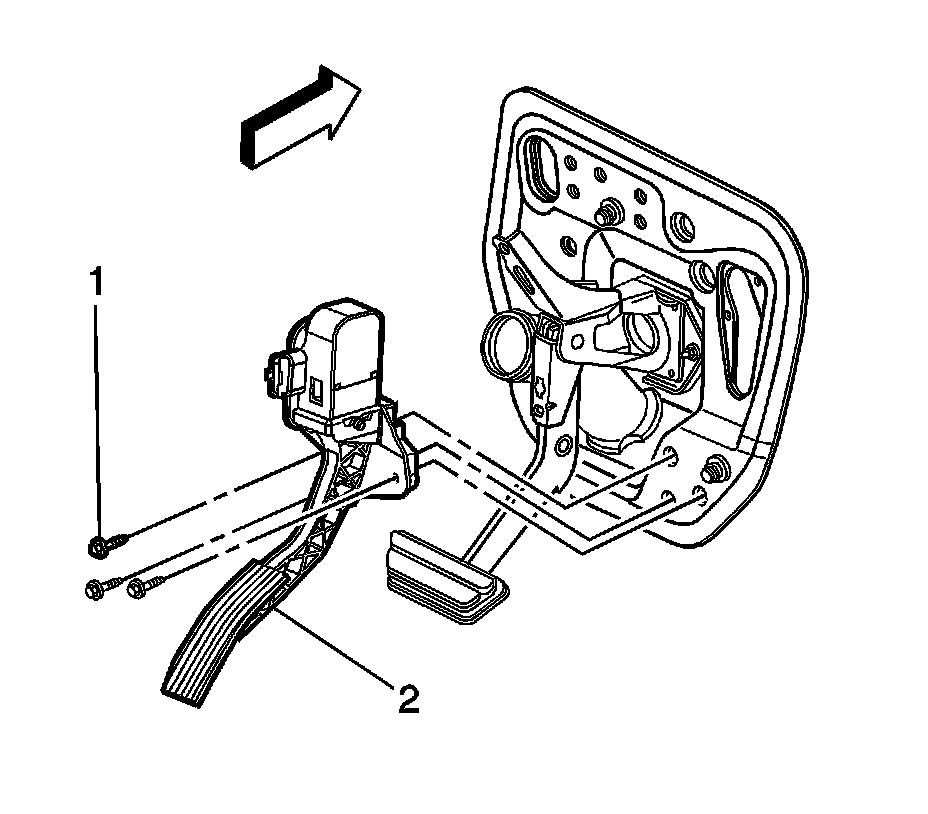 2. Install the APP bolts (1) and tighten to 10 Nm (89 lb in).