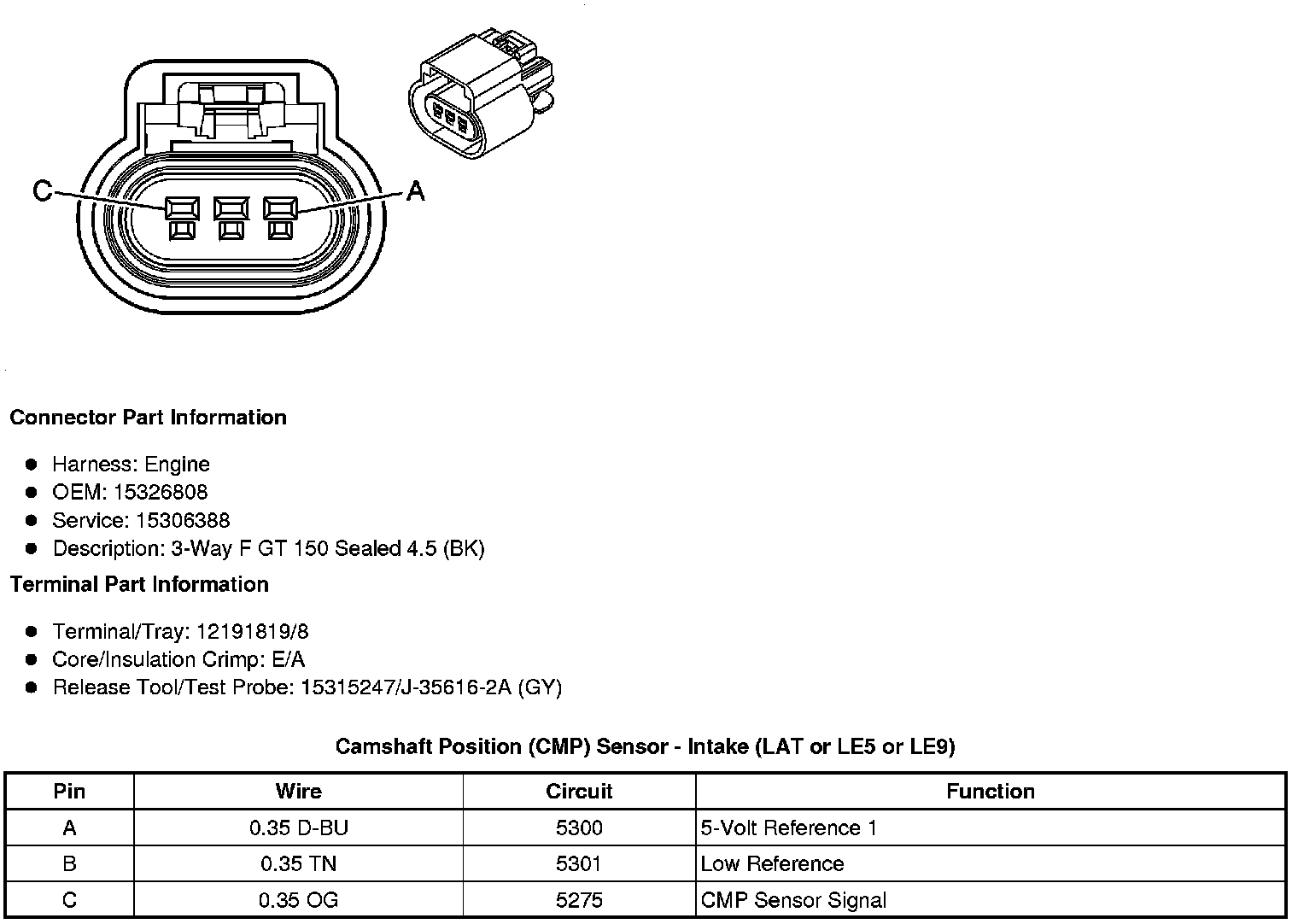 Camshaft Position (CMP) Sensor - Intake (LAT or LE5 or LE9)