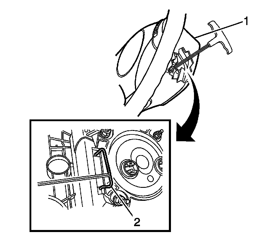 Insert the tool approximately 48 mm to contact the spring (2).