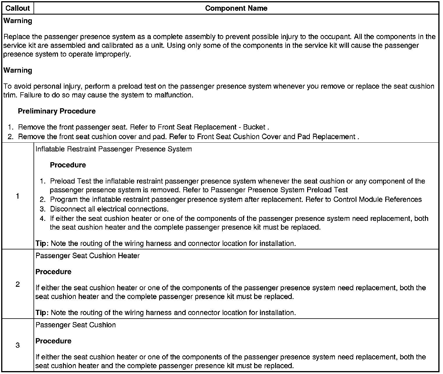 Inflatable Restraint Passenger Presence System Replacement - Front