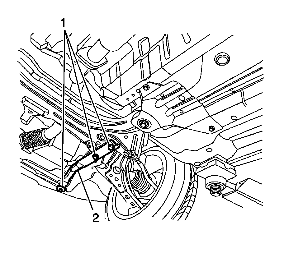 3.Remove the frame brace (2) from the vehicle.