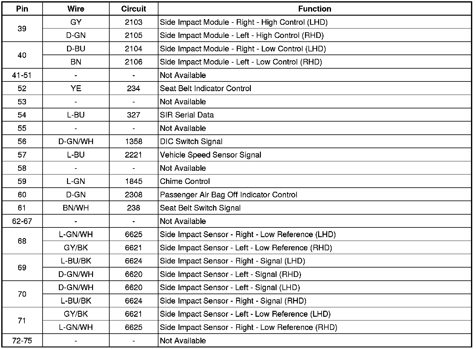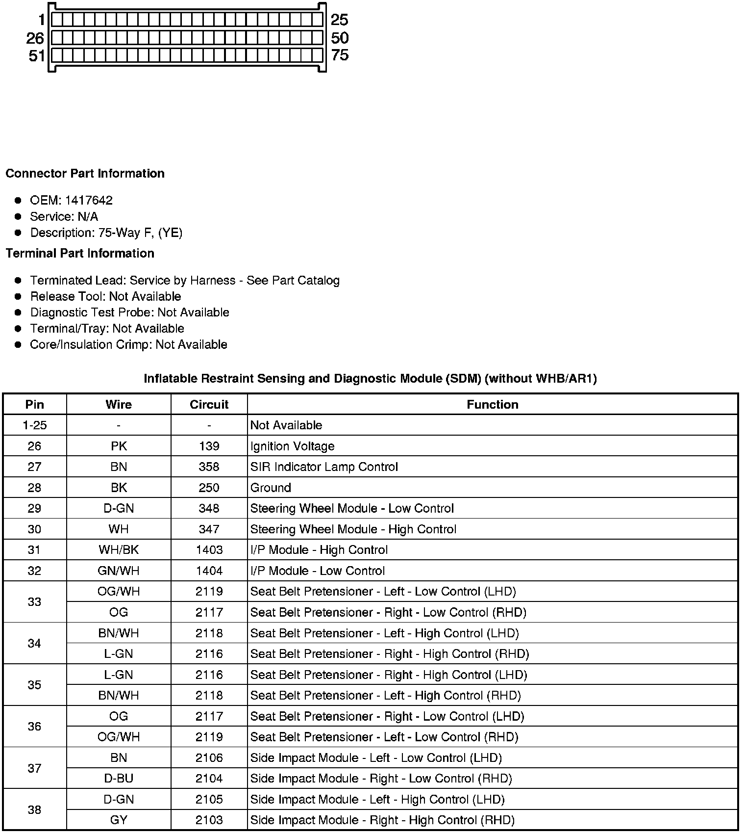 Inflatable Restraint Sensing and Diagnostic Module (SDM) (without WHB/AR1)