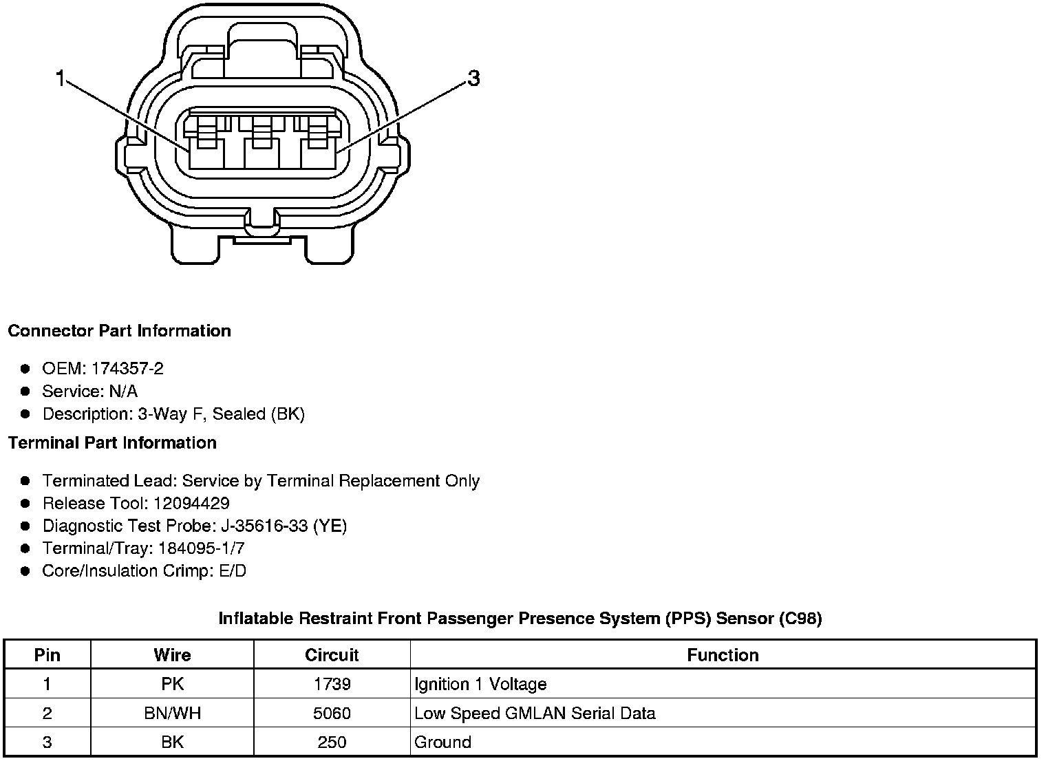 Inflatable Restraint Front Passenger Presence System (PPS) Sensor (C98)