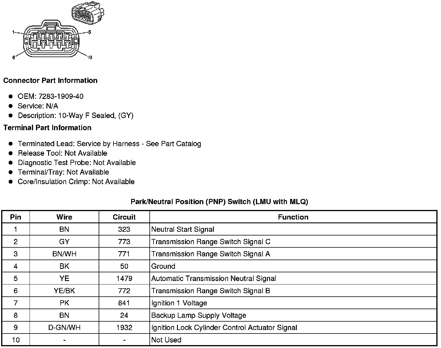 Park/Neutral Position (PNP) Switch (LMU with MLQ)