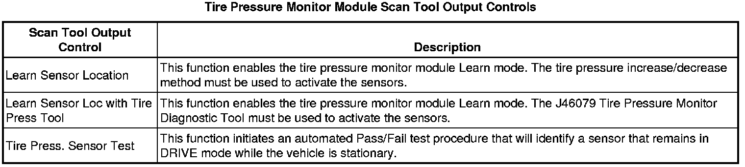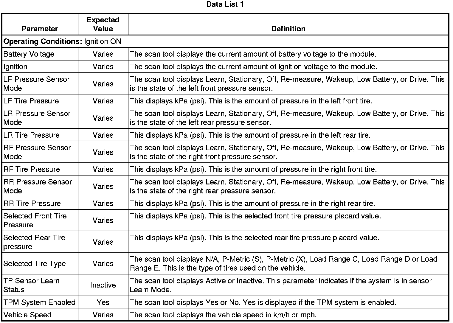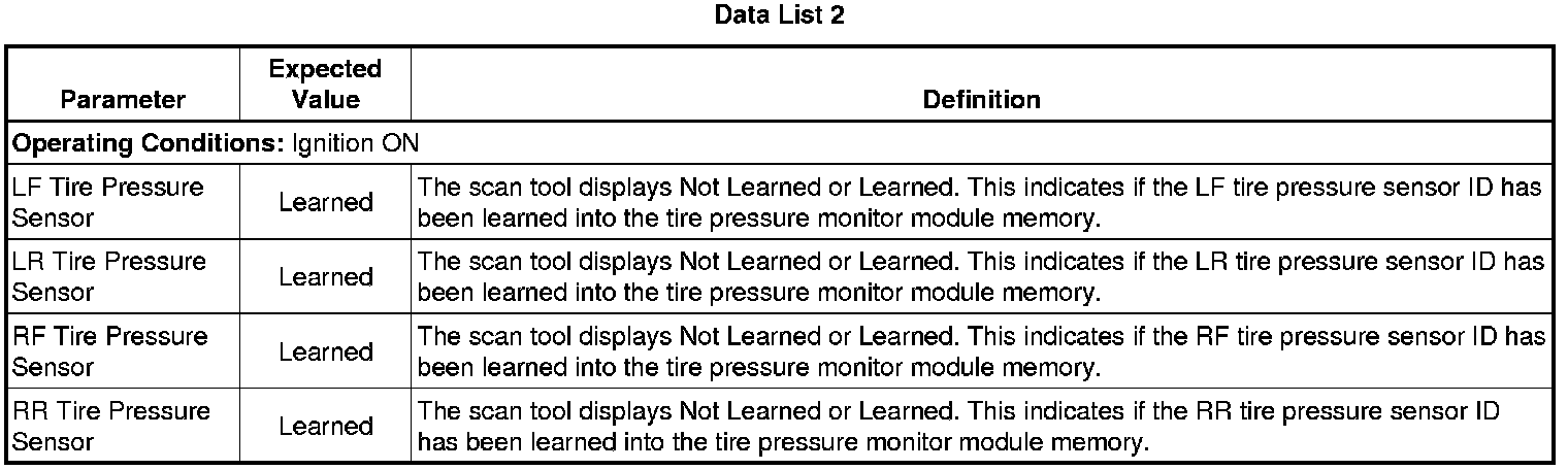 Tire Pressure Monitor Module Scan Tool Data Parameters