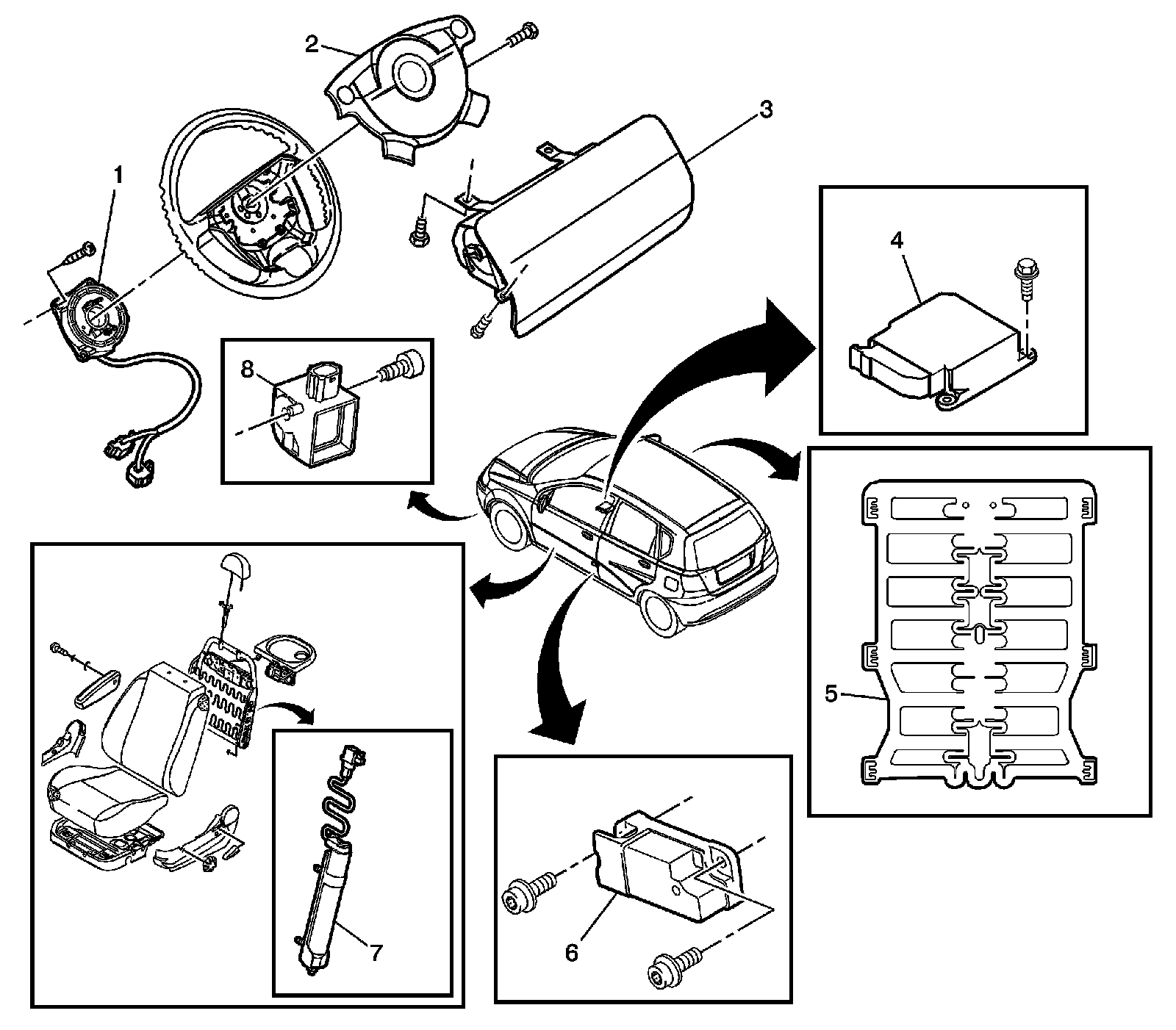 7 - Inflatable Restraint Side Impact Module (Left Side Shown, Right Side Similar)