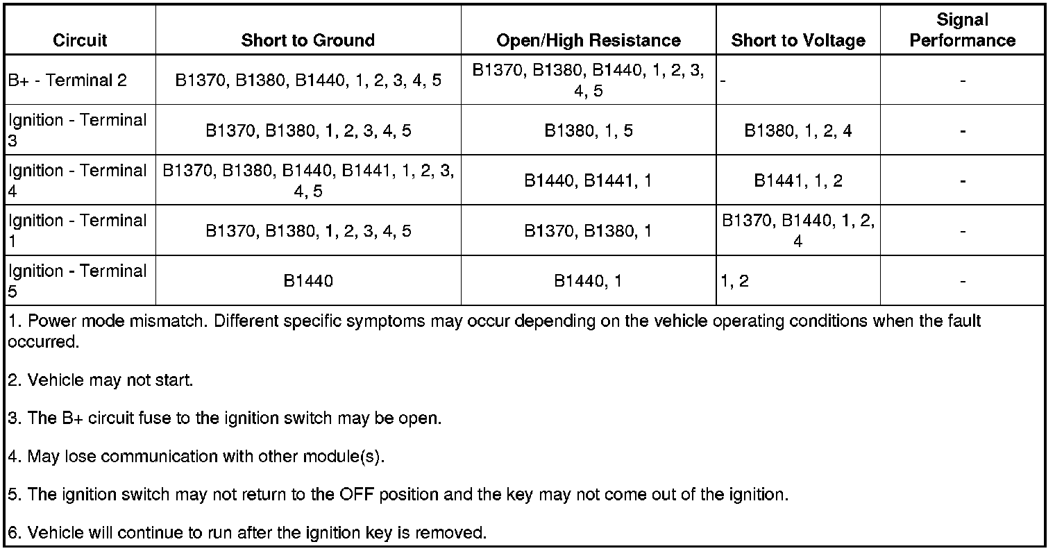 With a scan tool, access IPC, Power Mode data display list and compare all parameters listed with the corresponding ignition key position. The IPC Power Mode Parameters table below illustrates the correct state of these input parameters in correspondence to the ignition switch position. The circuits which the individual parameters are related to are in parentheses.