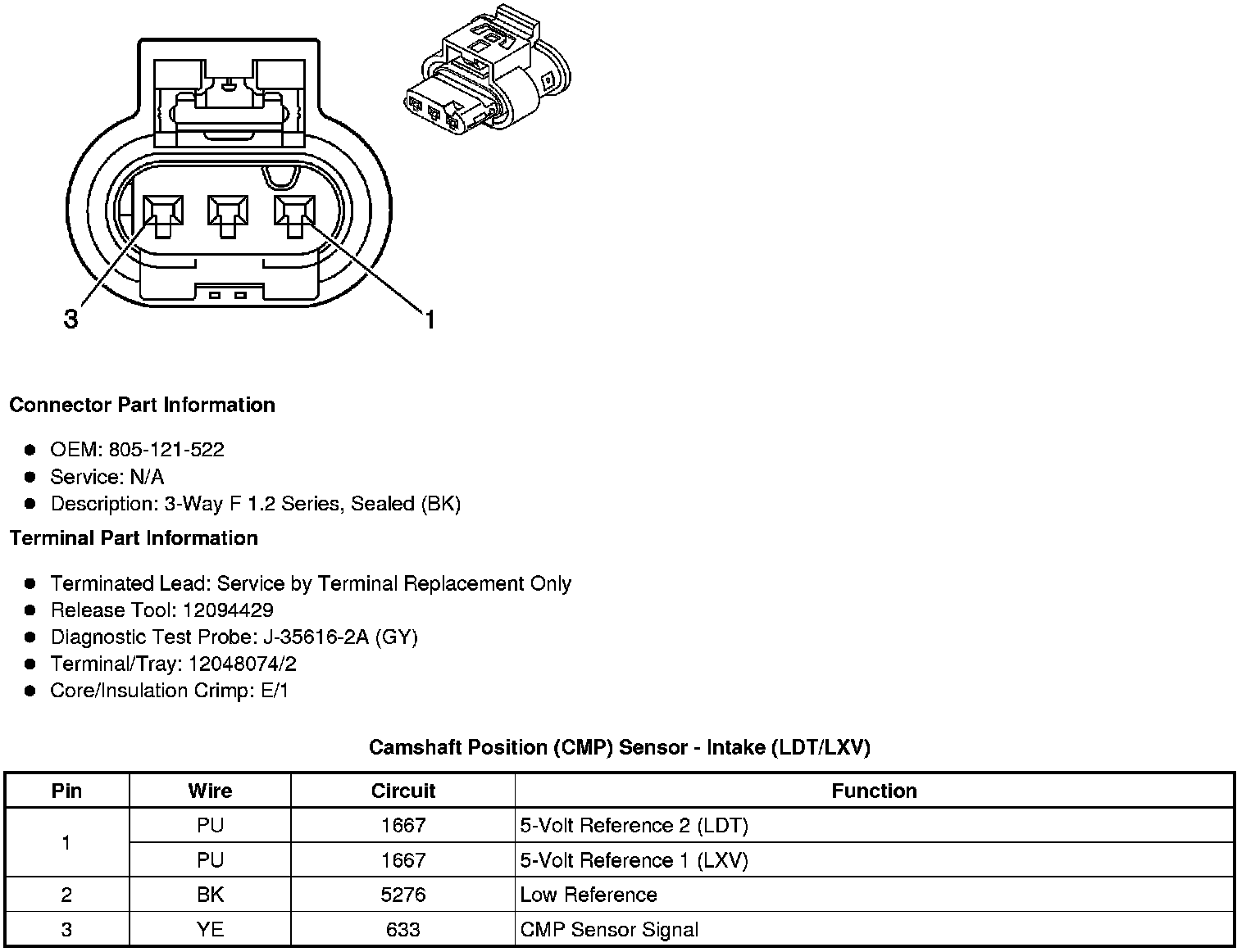 Camshaft Position (CMP) Sensor - Intake (LDT/LXV)