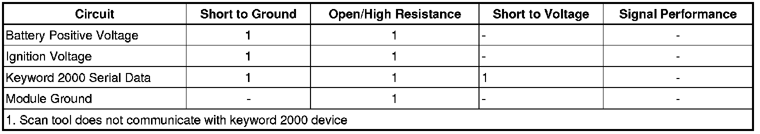 Certain modules communicate with a scan tool via the keyword 2000 serial data circuit. The keyword 2000 system is for diagnostics of those modules only. There is no communication between any other modules on the keyword 2000 serial data system.