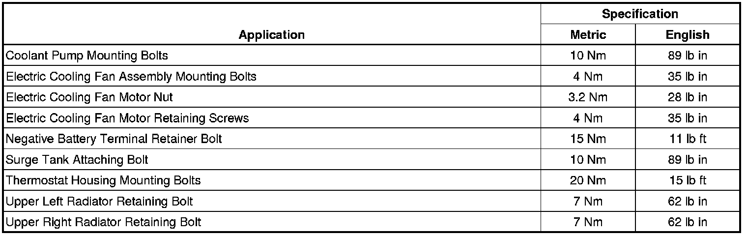 Fastener Tightening Specifications
