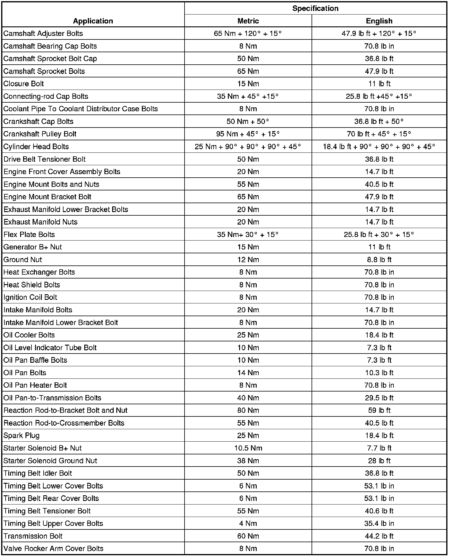 Fastener Tightening Specifications