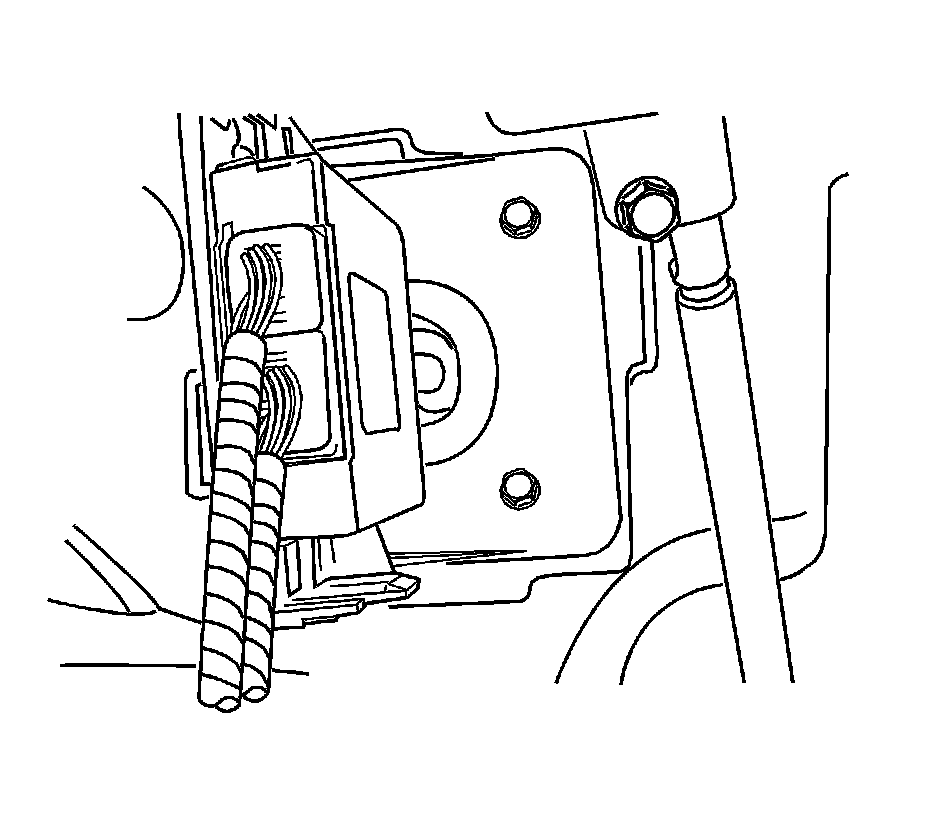 2. Locate the transmission control module (TCM) electrical connector next to the brake pedal assembly.