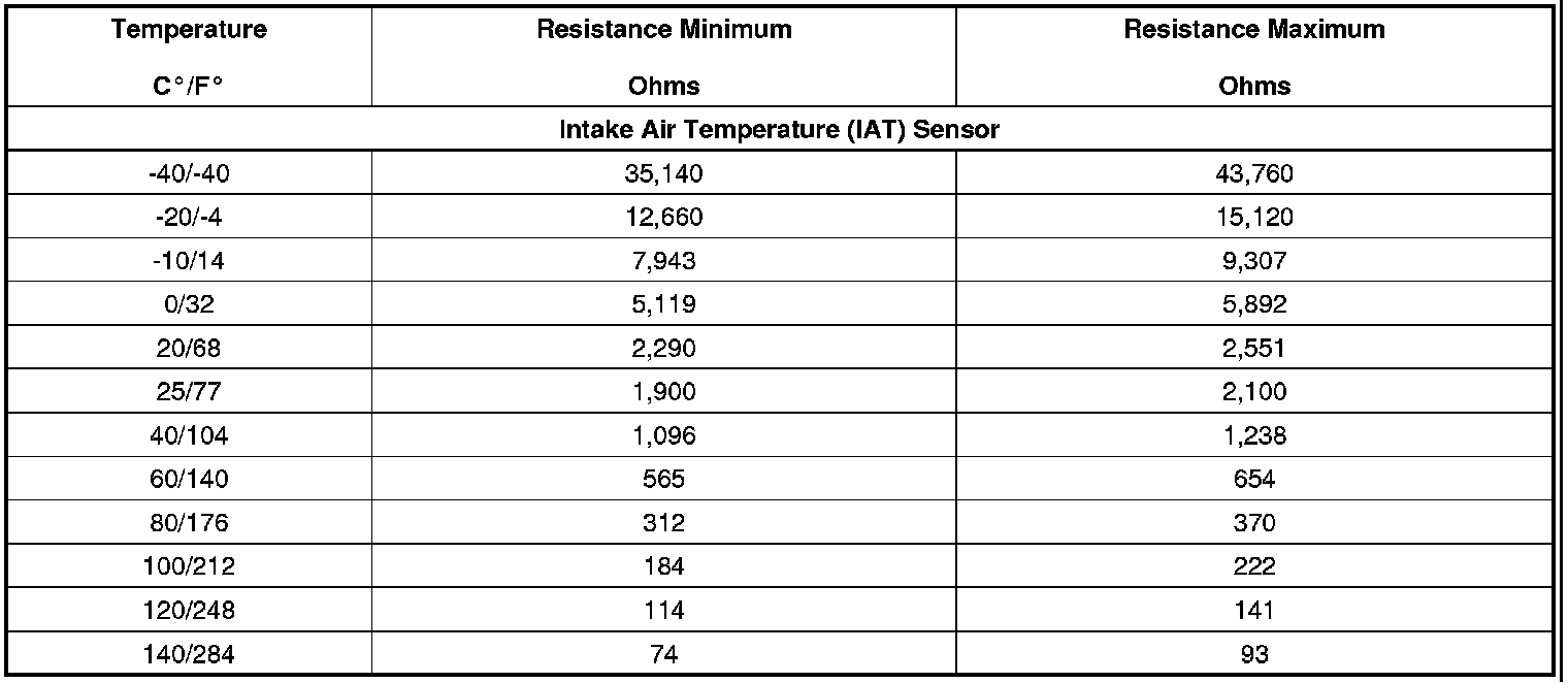 Temperature Versus Resistance - Intake Air Temperature Sensor
