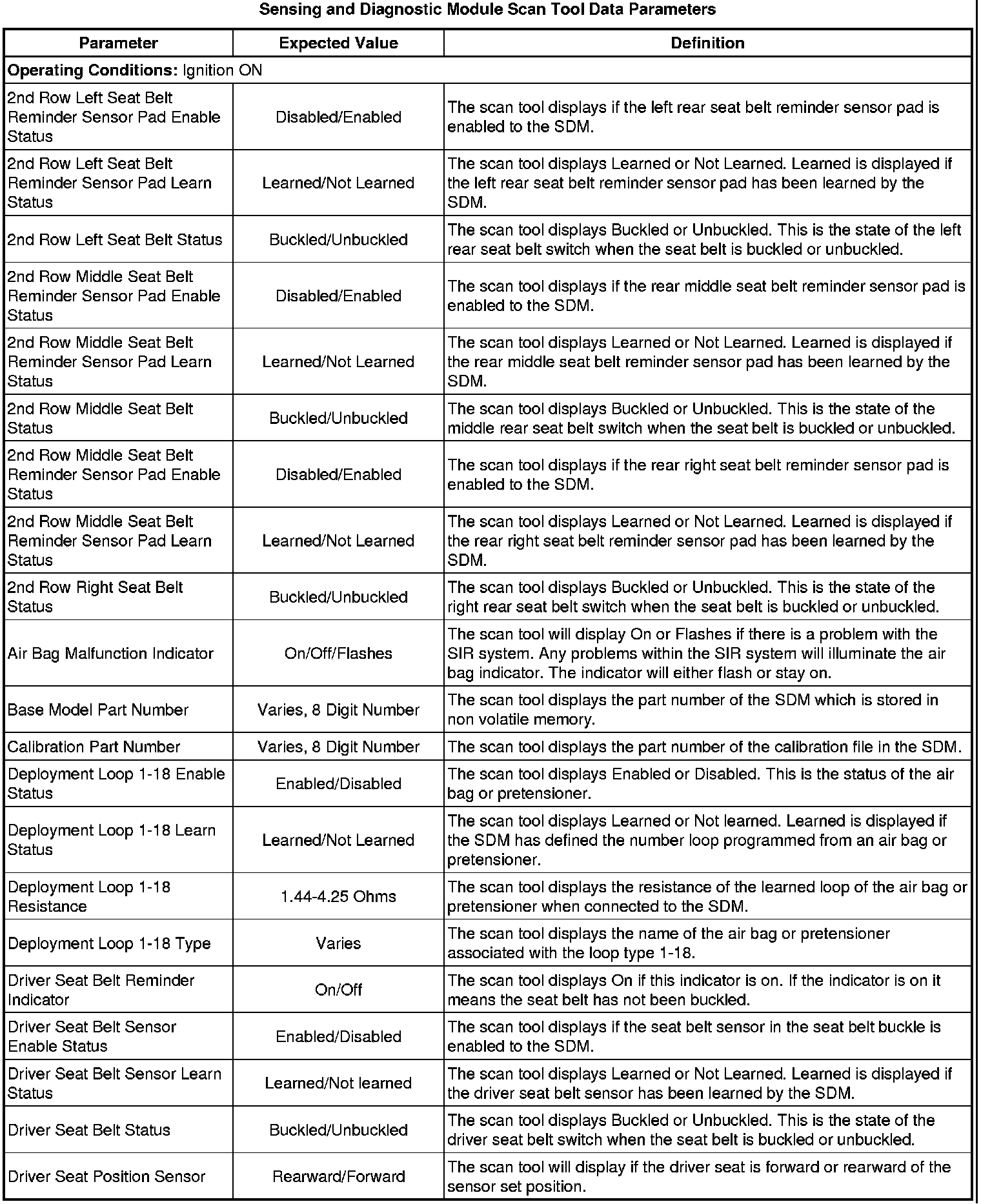 Inflatable Restraint Sensing and Diagnostic Module Scan Tool Information