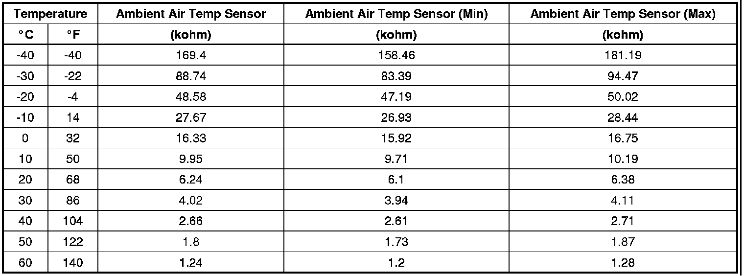 Ambient Air Temperature Sensor Resistance