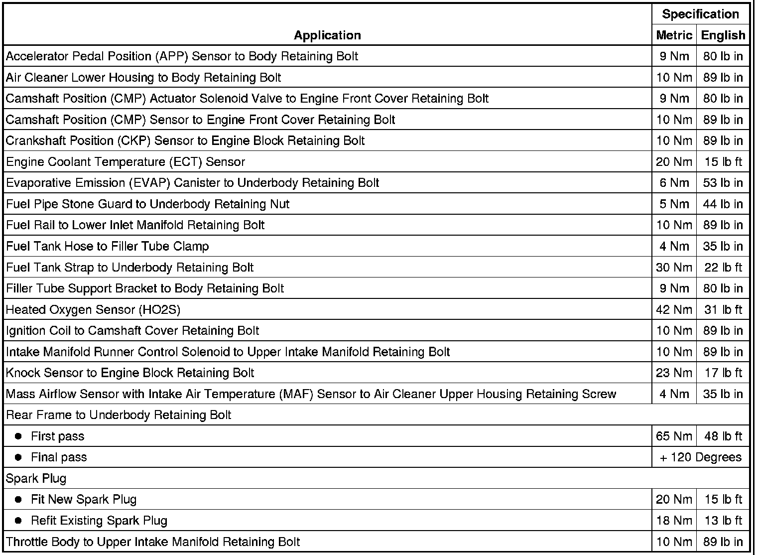 Fastener Tightening Specifications