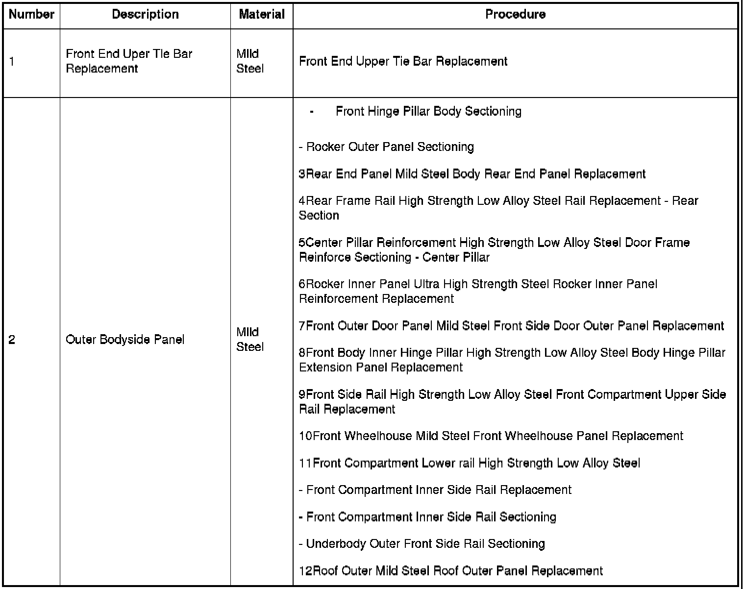 - Underbody Outer Front Side Rail Sectioning