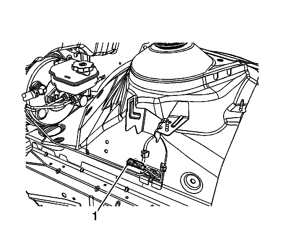 1. From inside the engine compartment, disconnect the front wheel sensor electrical connector (1).
