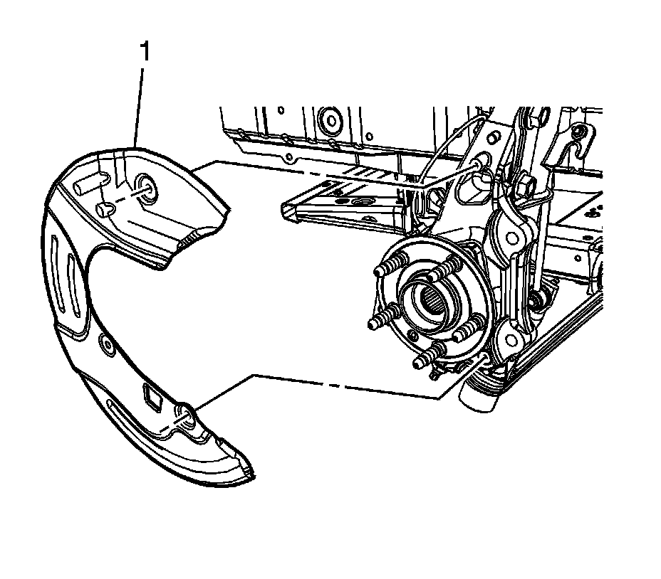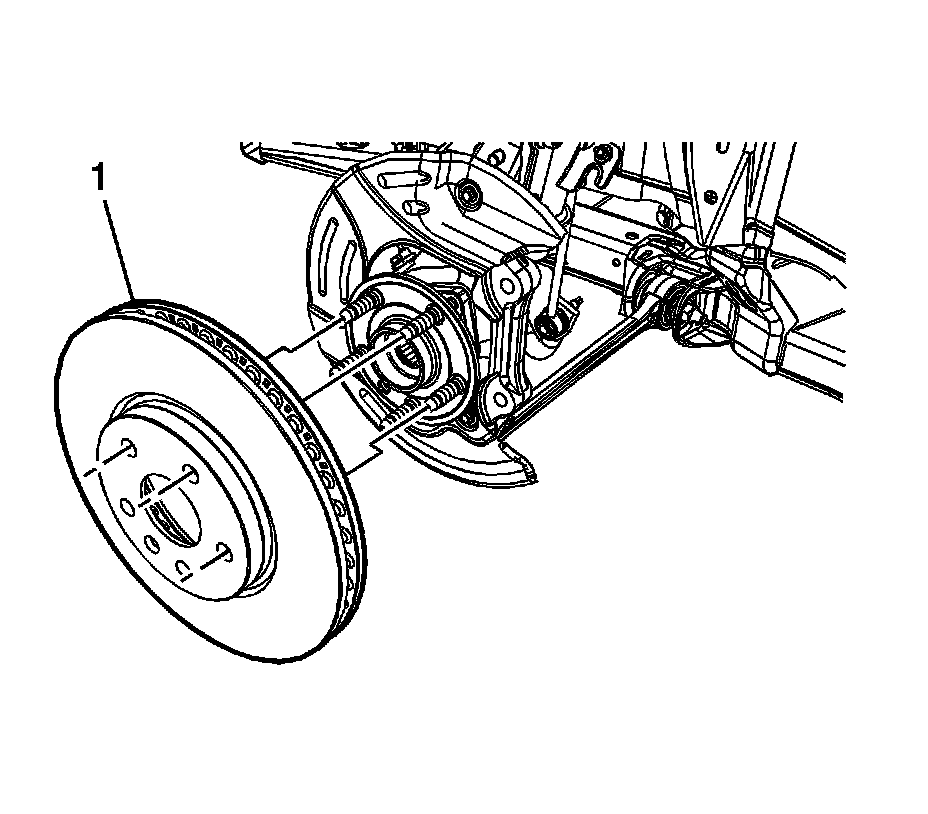 3. Remove the front disc brake rotor (1). Refer to Front Brake Rotor Replacement (LLT) (Front Brake Rotor Replacement)Front Brake Rotor Replacement (L99, LS3) (Front Brake Rotor Replacement).