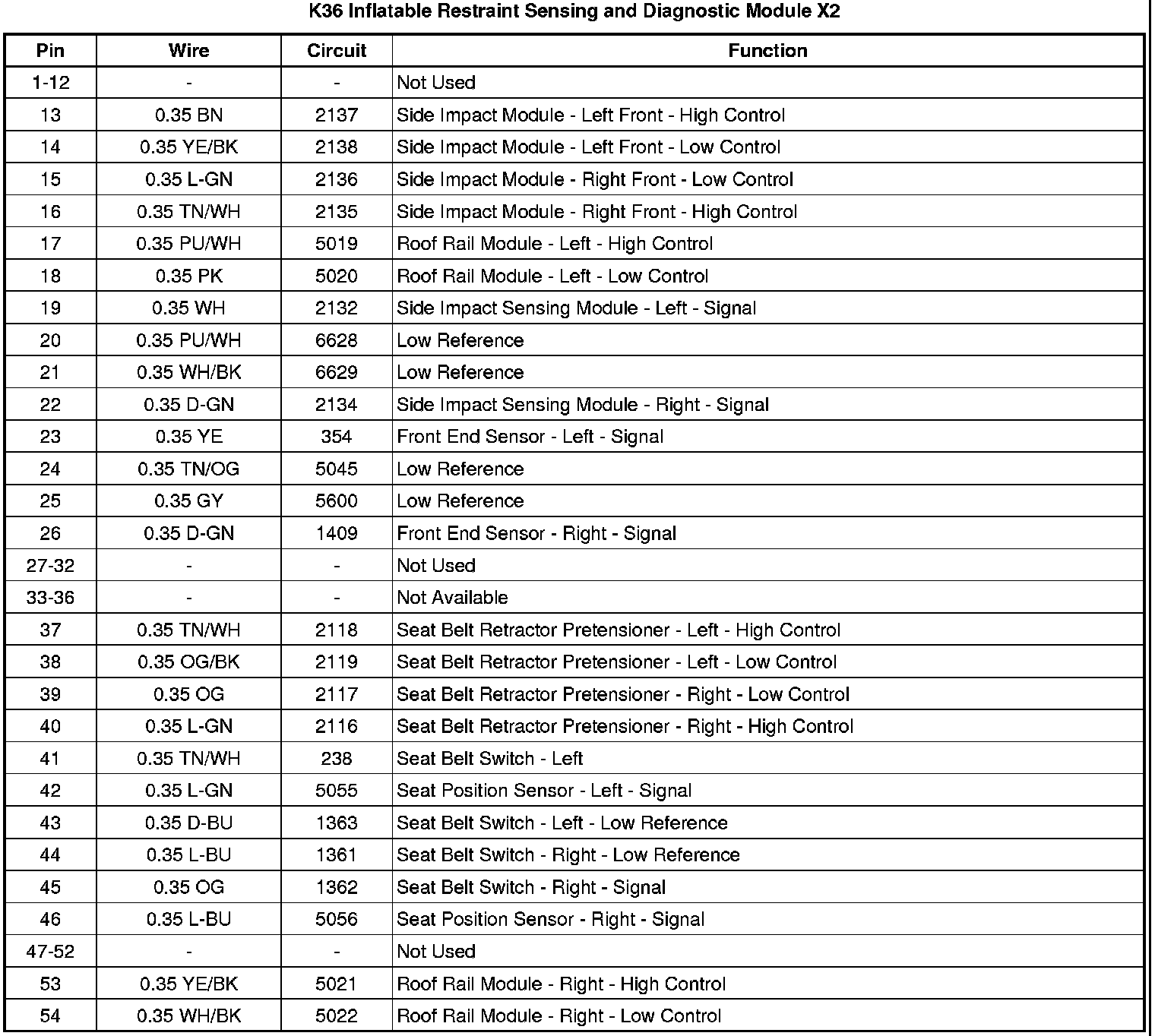 K36 Inflatable Restraint Sensing and Diagnostic Module X2