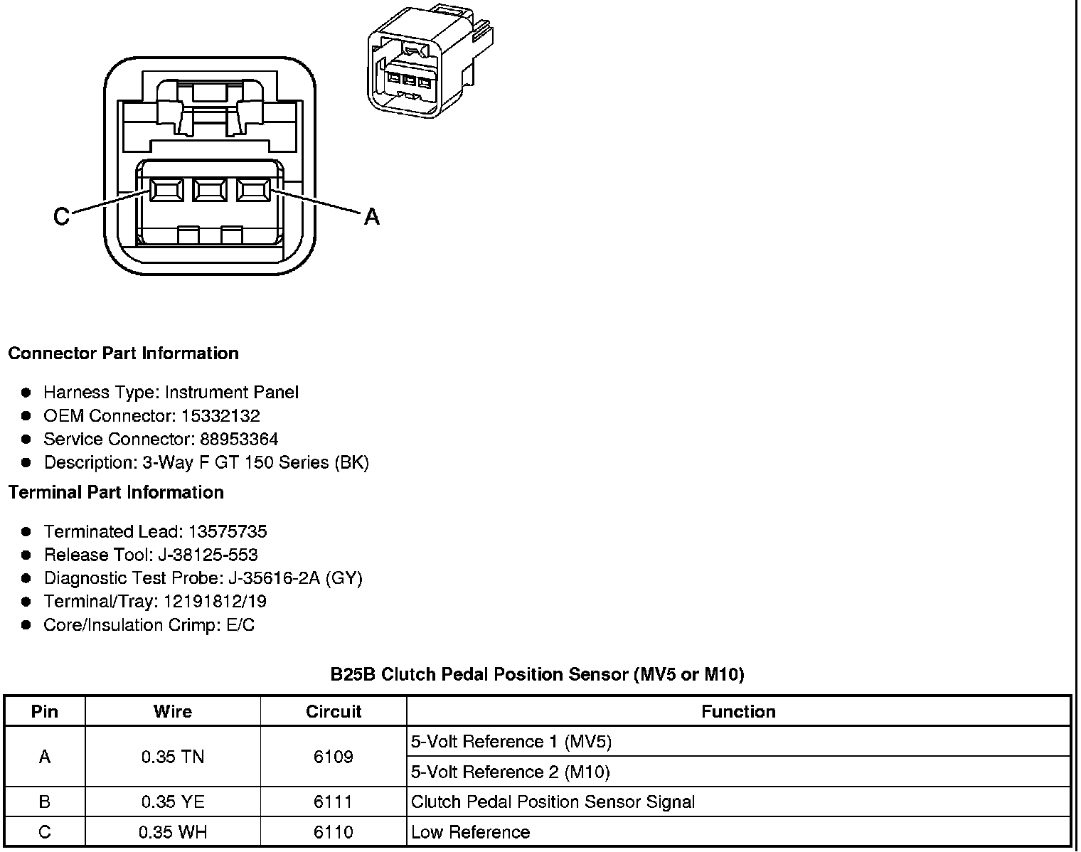 B25B Clutch Pedal Position Sensor (MV5 or M10)