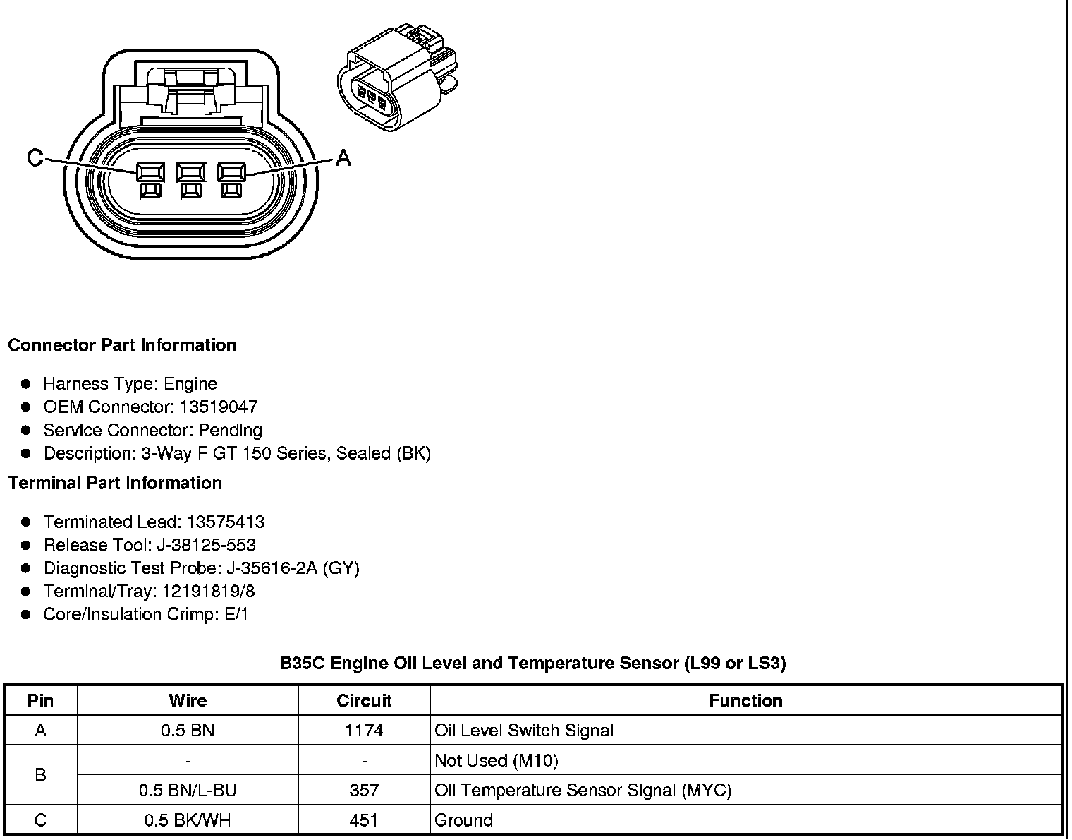 B35C Engine Oil Level and Temperature Sensor (L99 or LS3)