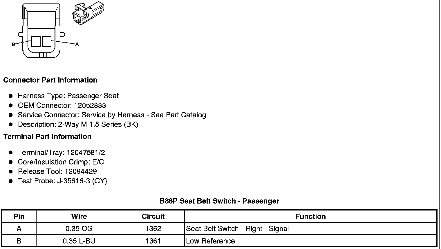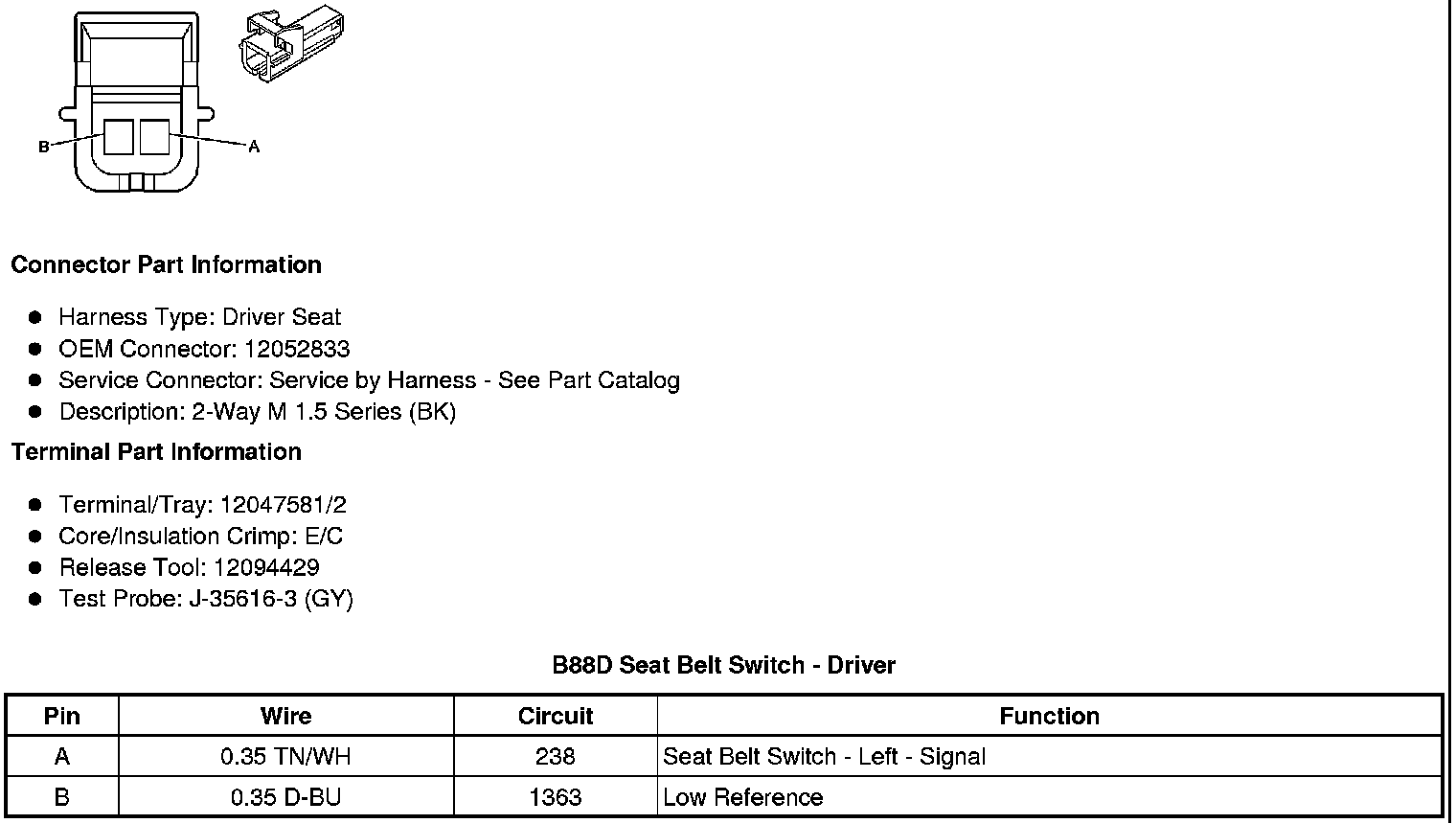 B88D Seat Belt Switch - Driver