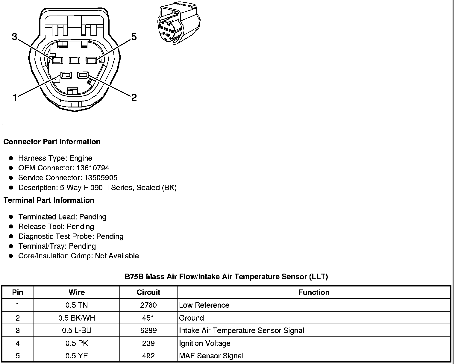 B75B Mass Air Flow/Intake Air Temperature Sensor (LLT)