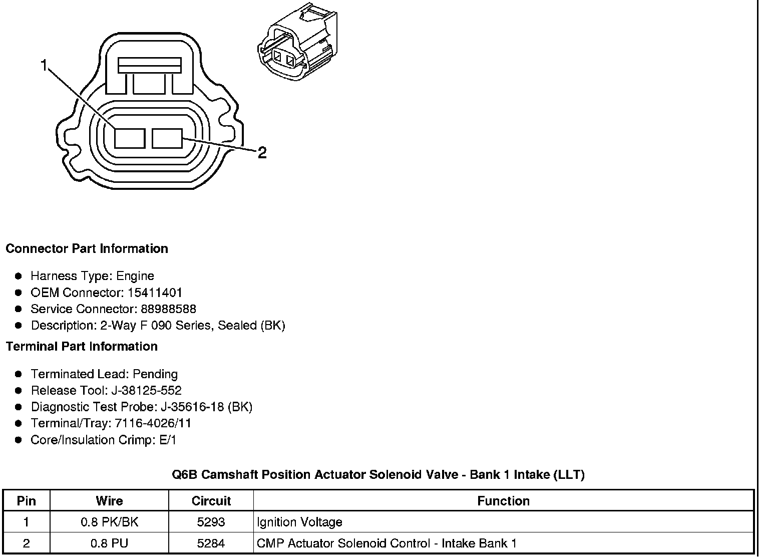 Q6B Camshaft Position Actuator Solenoid Valve - Bank 1 Intake (LLT)