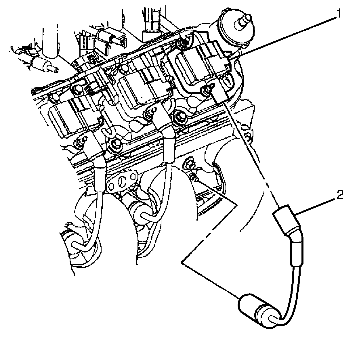 2. Install the spark plug wire (2) to the spark plug.