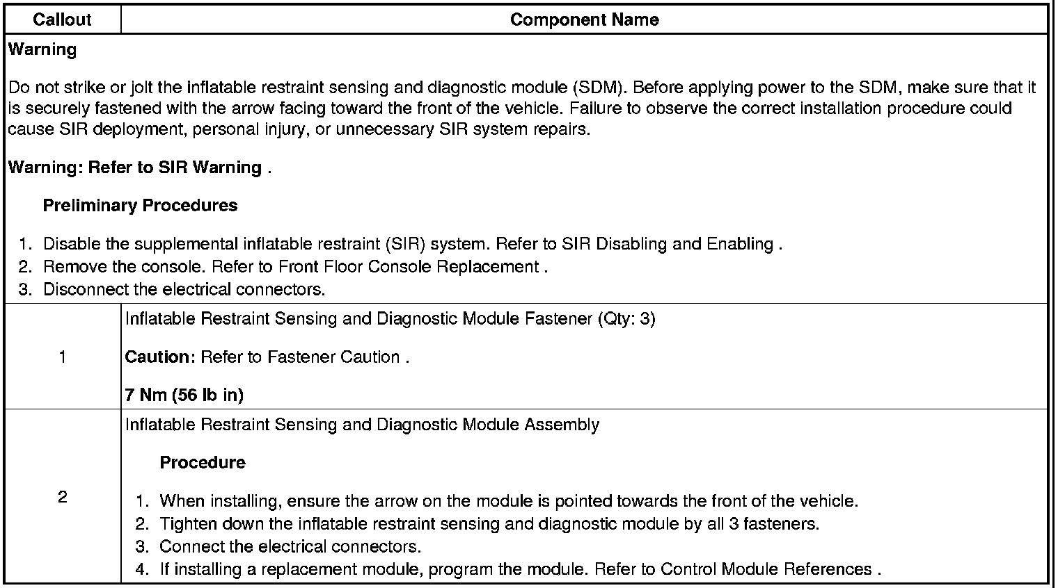 Inflatable Restraint Sensing and Diagnostic Module Replacement