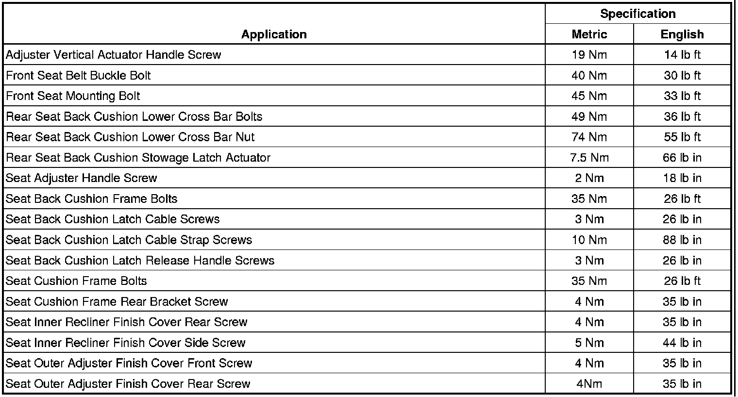 Fastener Tightening Specifications