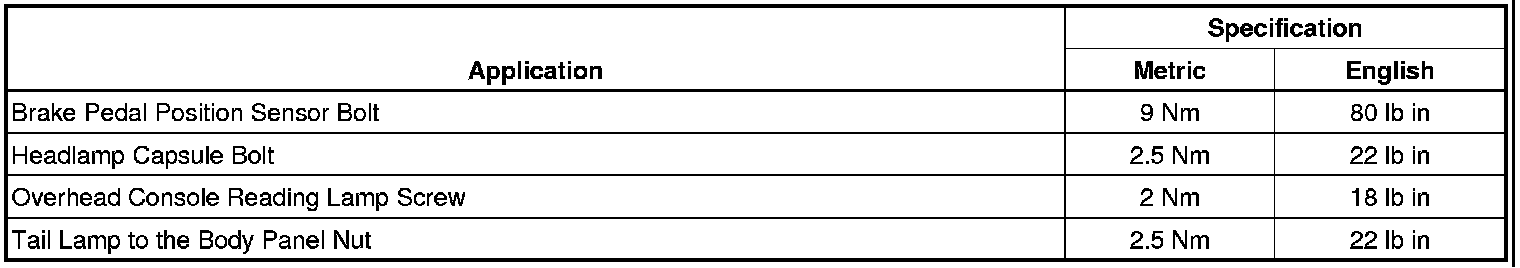 Fastener Tightening Specifications