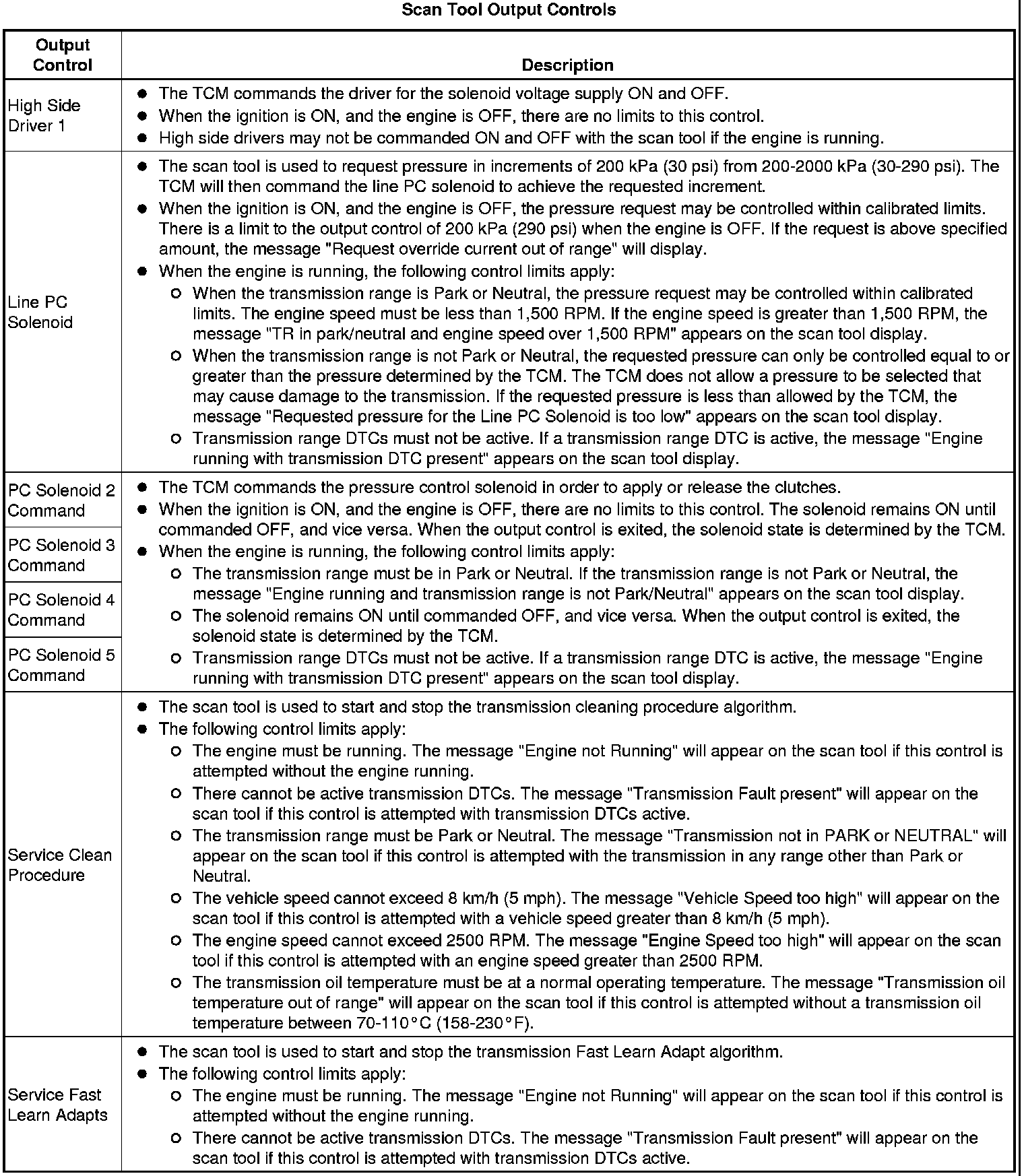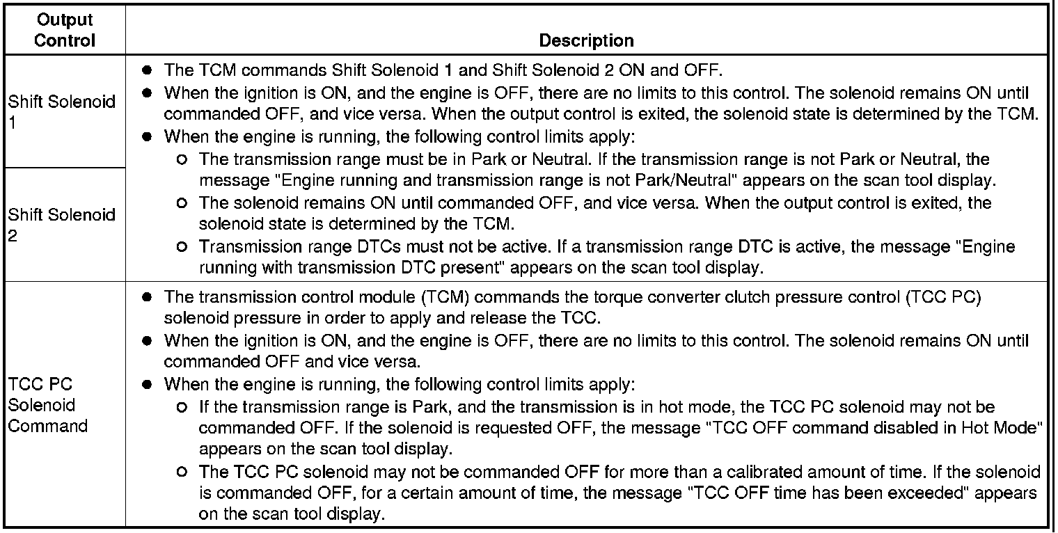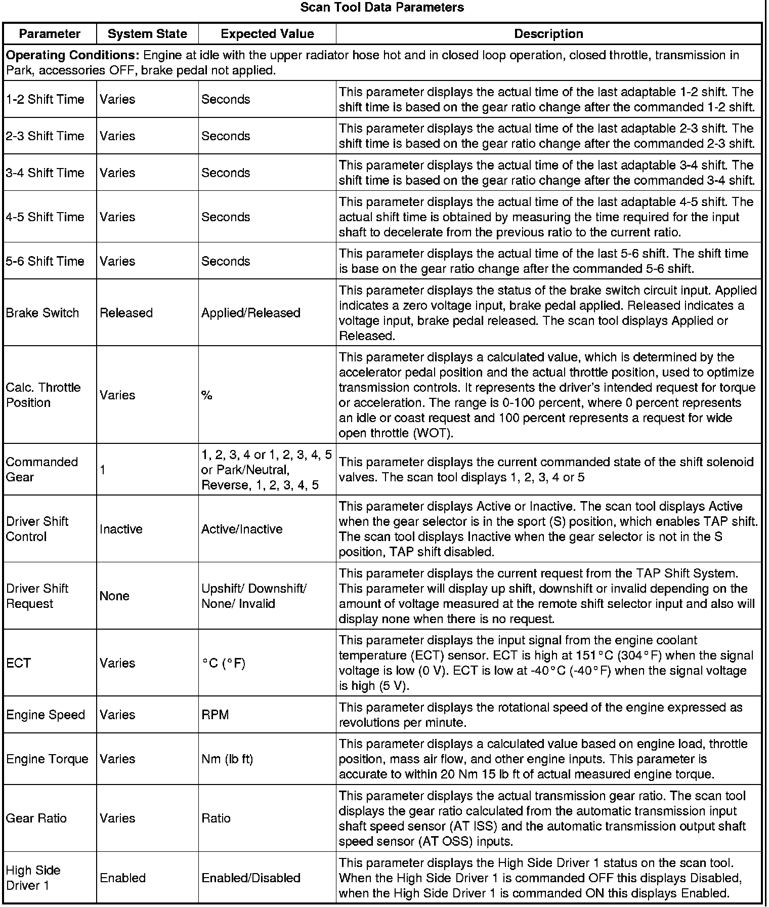 The Transmission Control Module Scan Tool Data List contains all transmission related parameters that are available on the scan tool. The list is arranged in alphabetical order. A given parameter may appear in any one of the data lists, and in some cases may appear more than once, or in more than one data list in order to group certain related parameters together.