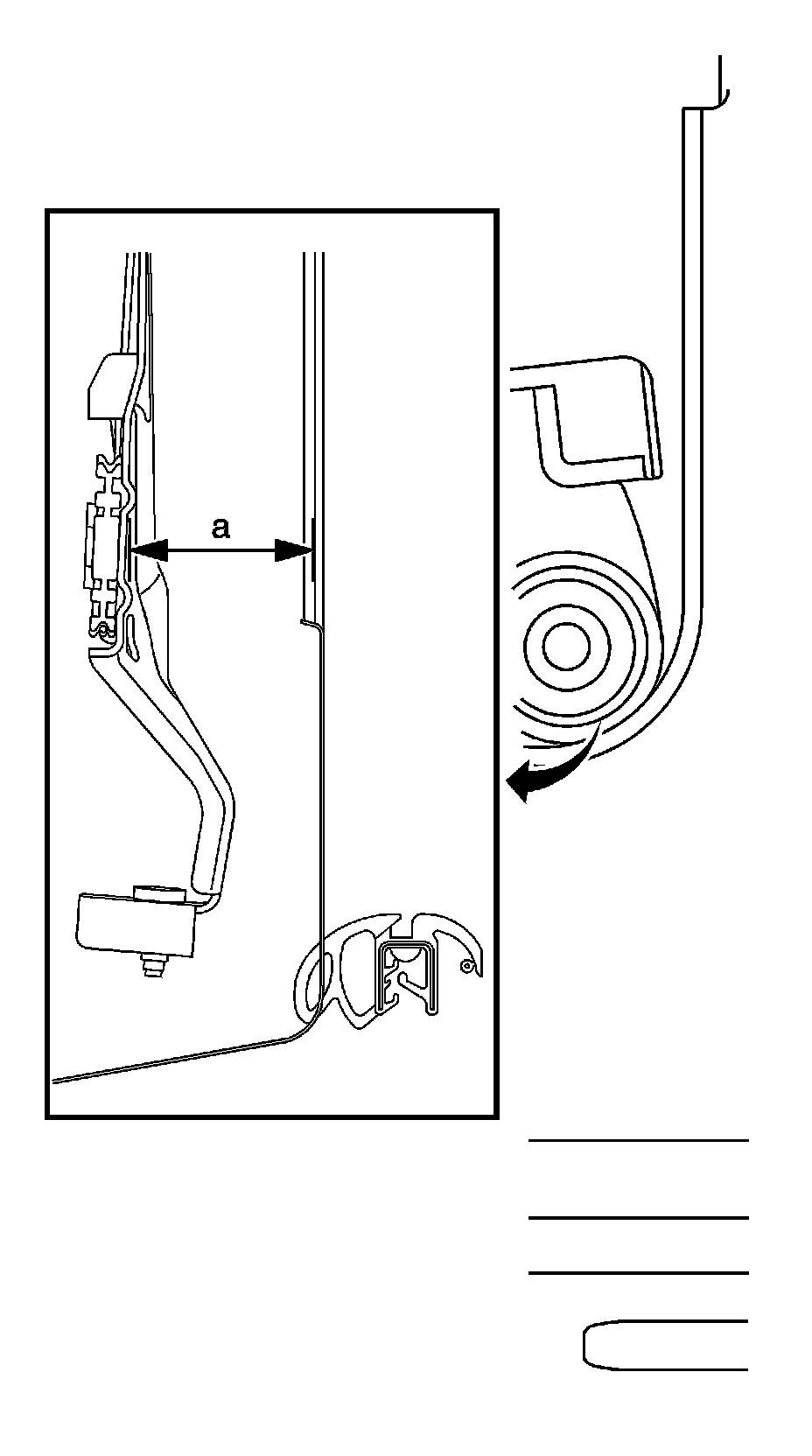 14. Measure the door window for proper seal penetration (a), at three locations. Record the measurements future reference. Adjust the door window seal for penetration.