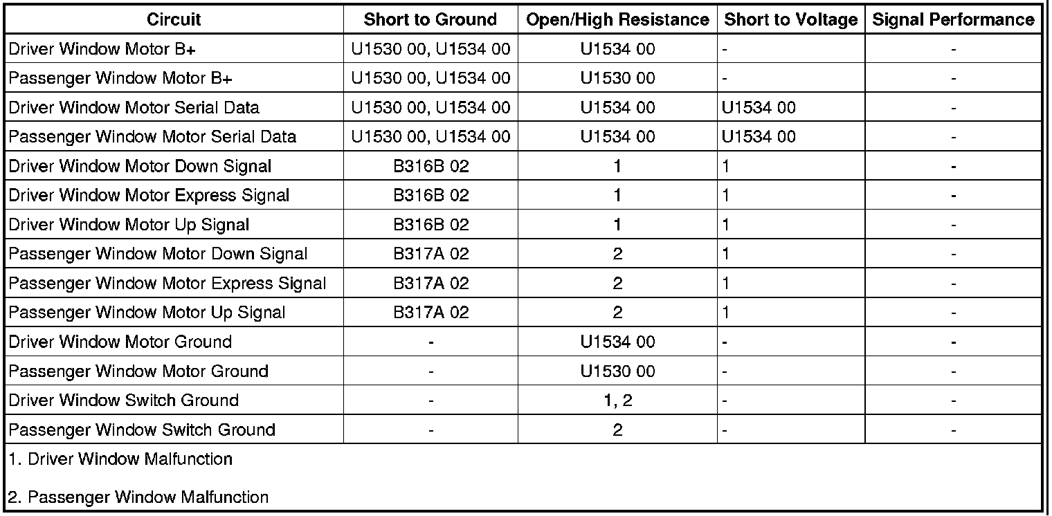 • If the passenger window does not perform as specified, refer to Window Motor Malfunction.