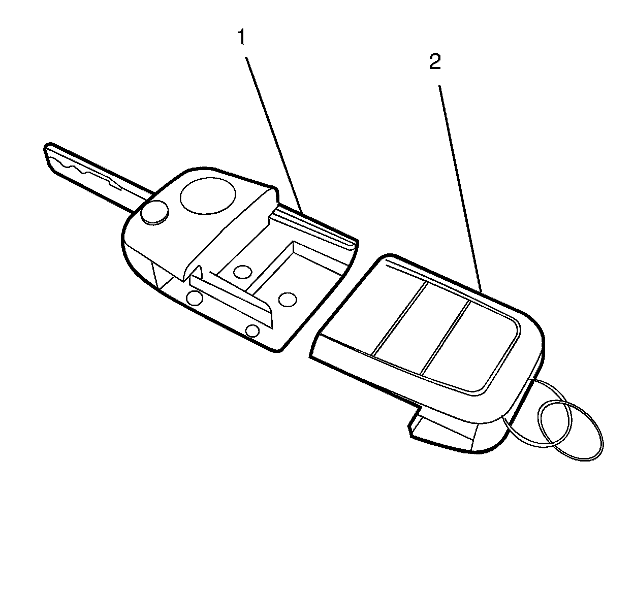 2. Separate the two key halves (1, 2).