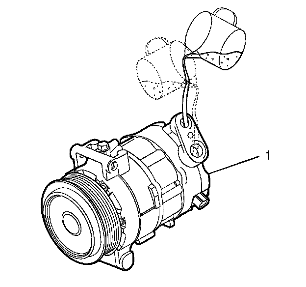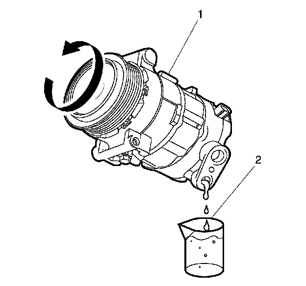 2. Record the amount of PAG oil drained from the removed compressor (1). This measurement will be used during installation of the replacement compressor.