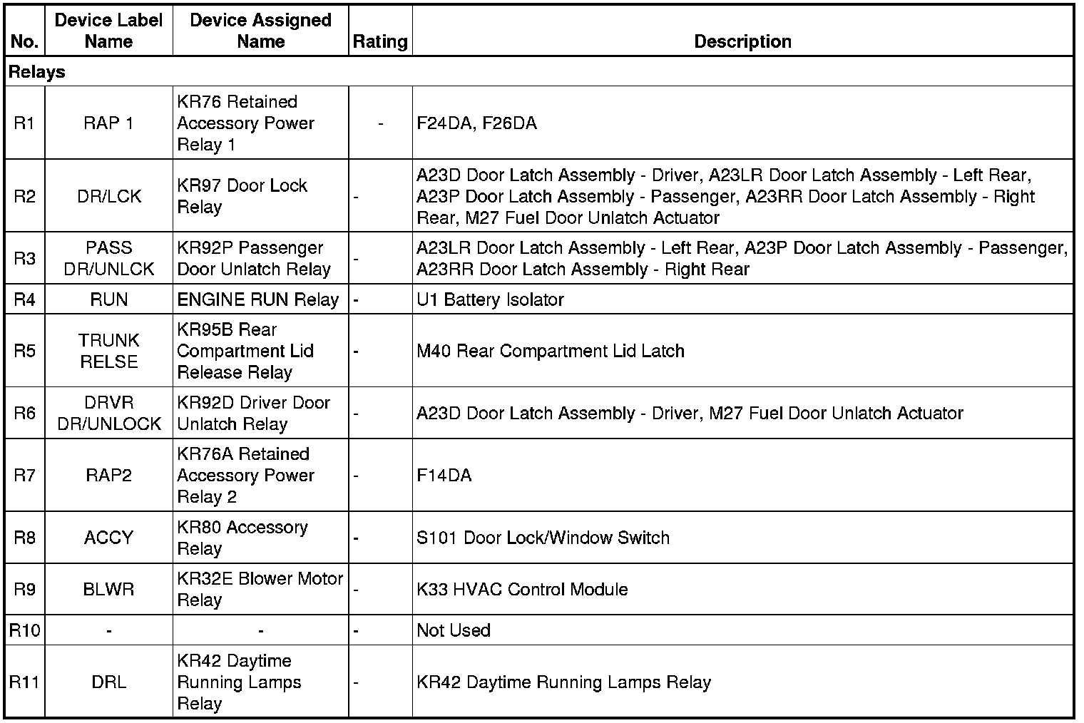 R4 RUN ENGINE RUN Relay