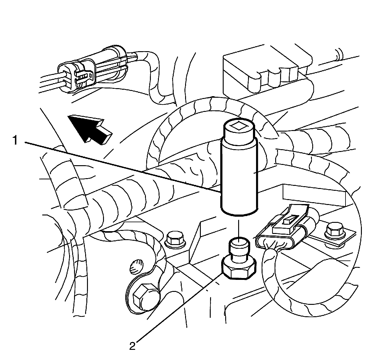 2. Use the J 41712 - oil pressure switch socket (1) to remove the oil pressure sensor (2).